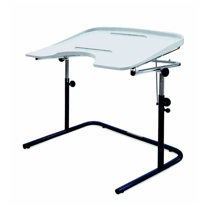 Tavolo da lavoro con incavo e bordo, relazione in inclinazione ed altezza, piano lavabile, telaio tu-bolare cromato con base verniciata dotato di ferma libro e poggia penna.